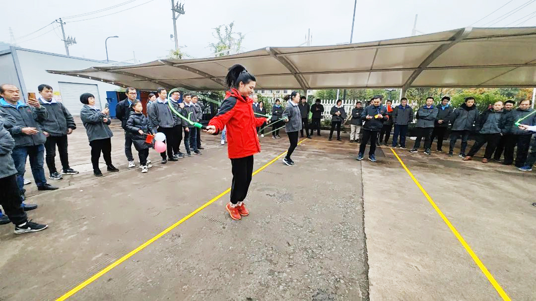 副總經(jīng)理程慧慧為跳繩獲獎(jiǎng)人員頒發(fā)獎(jiǎng)品,合影留念